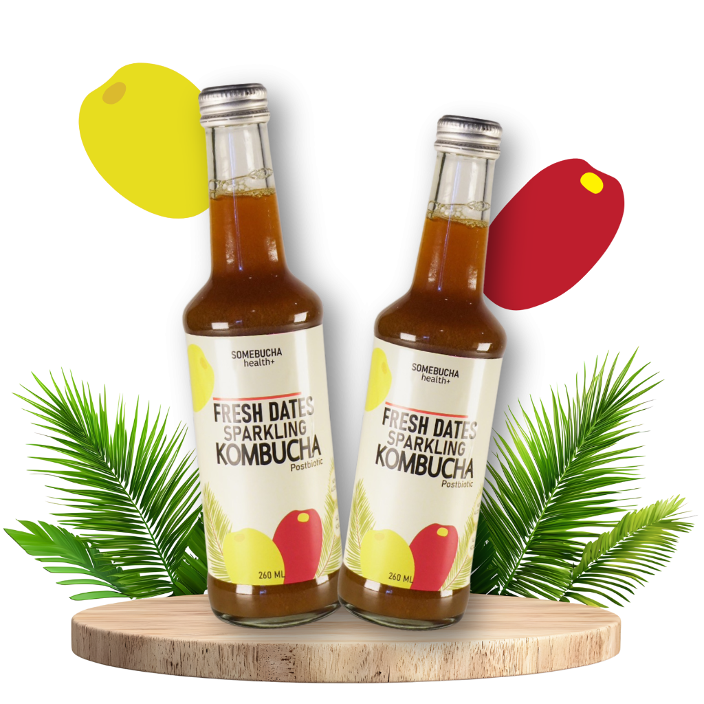 นวัตกรรมเครื่องดื่มเพื่อสุขภาพ Fresh Date Sparkling Kombucha ผลิตจาก อินทผลัมผลสด คัดพิเศษจากสวน เดอะวีร่า การ์เดน มาตรฐาน ThaiGAP ผ่านกระบวนการหมักธรรมชาติ ไม่มีการเติมแต่งสี กลิ่น รส นอกจากจะได้โพสไบโอติกจากคอมบูฉะแล้ว คุณยังจะได้ประโยชน์จากอินทผลัมด้วยเช่นกัน