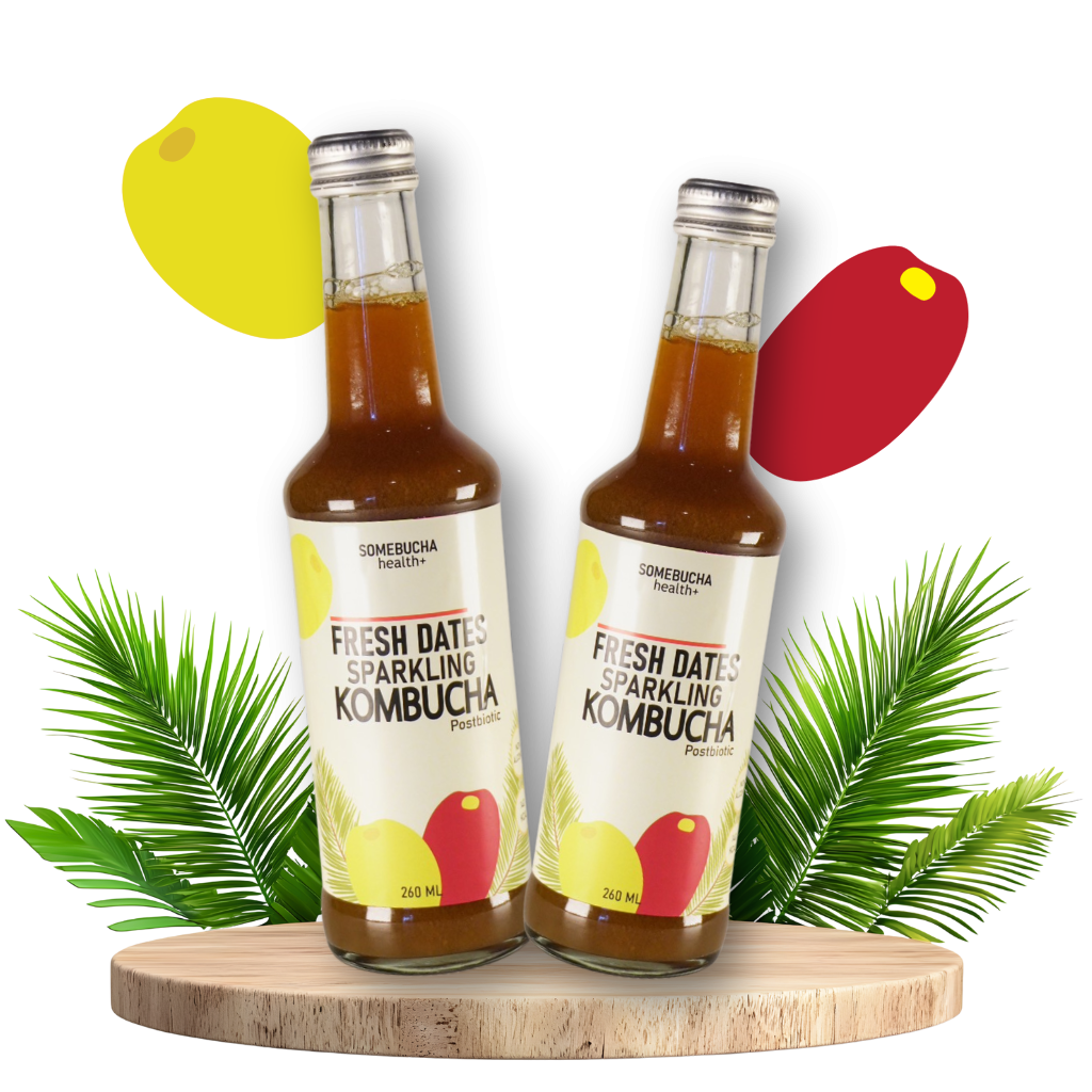 นวัตกรรมเครื่องดื่มเพื่อสุขภาพ Fresh Date Sparkling Kombucha ผลิตจาก อินทผลัมผลสด คัดพิเศษจากสวน เดอะวีร่า การ์เดน มาตรฐาน ThaiGAP ผ่านกระบวนการหมักธรรมชาติ ไม่มีการเติมแต่งสี กลิ่น รส นอกจากจะได้โพสไบโอติกจากคอมบูฉะแล้ว คุณยังจะได้ประโยชน์จากอินทผลัมด้วยเช่นกัน